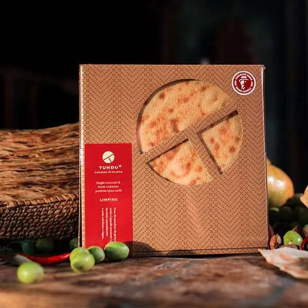 “LIMPIDU” IL CARASAU TUNDU A LIEVITAZIONE NATURALE COME IN ANTICHITA’ CON “SA MADRIHE” (lievito madre). IL PREZIOSO GRANO SENATORE CAPPELLI FRUTTO DI UN’ANTICA SELEZIONE DI SEMENTI E’ MACINATO NEL MULINO A PIETRA DI ANGELO ANEDDA CHE ESISTE DA ORMAI TRE GENERAZIONI. COTTO RIGOROSAMENTE NEL FORNO A LEGNA