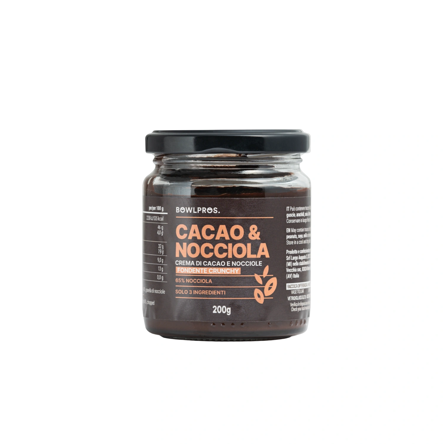 Crema Cacao & Nocciole Fondente Crunchy – Bowlpros 200 g