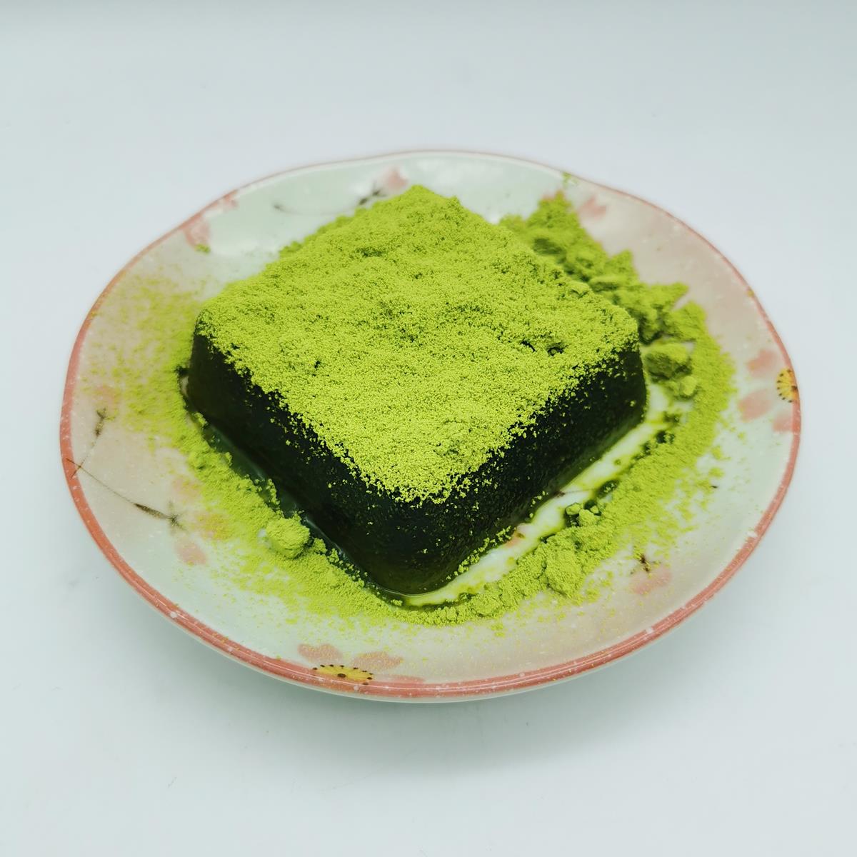 LE IMMAGINI DEL WARABI MOCHI APERTO FANNO RIFERIMENTO A QUELLO AL MATCHA.